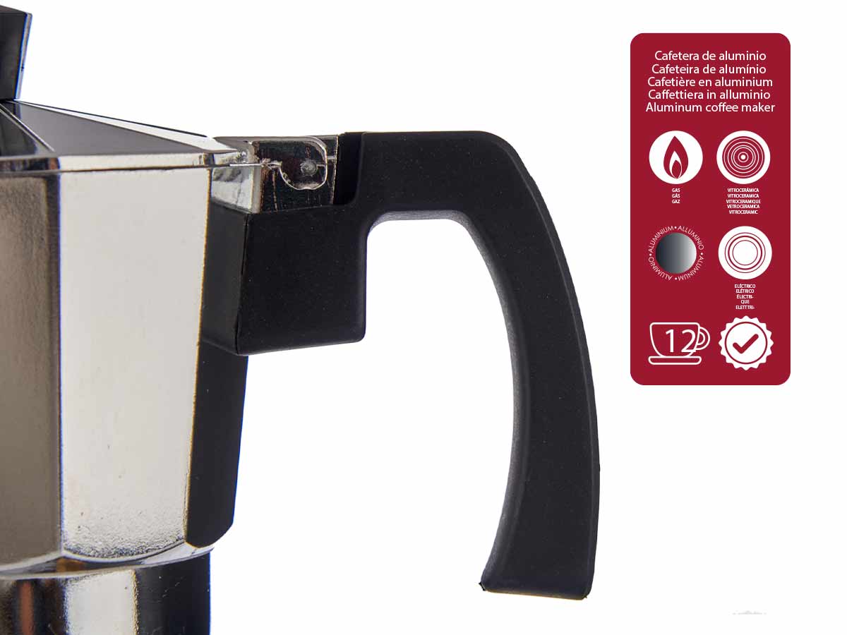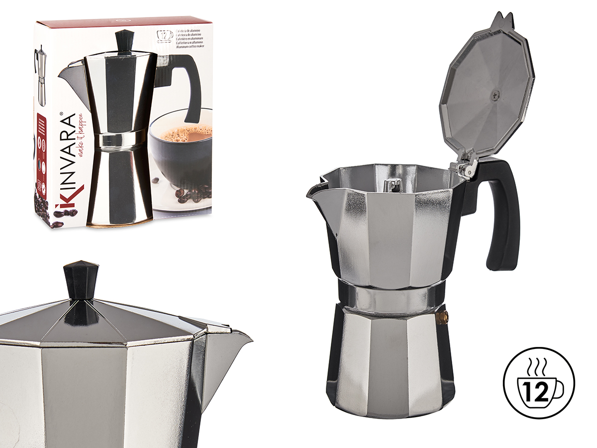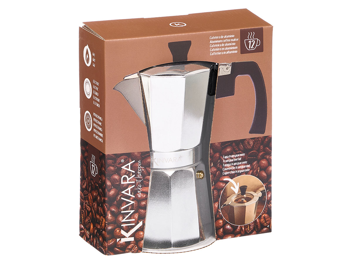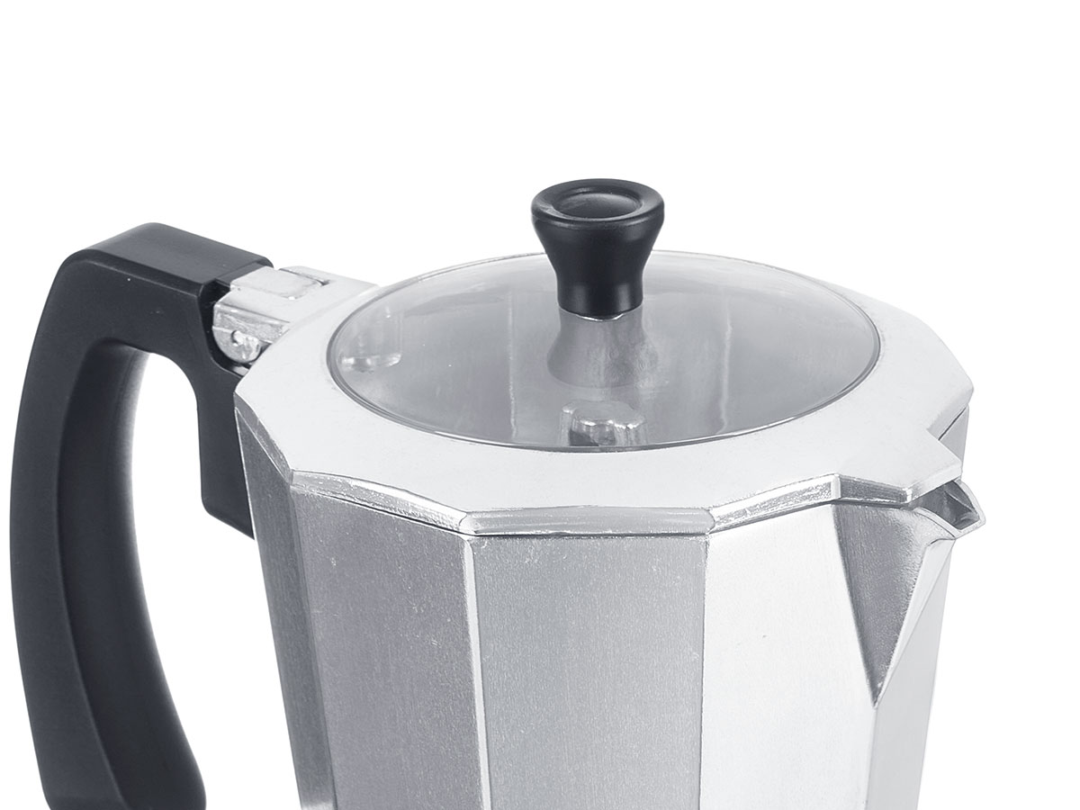 12-cup aluminium coffe maker with transparent tip