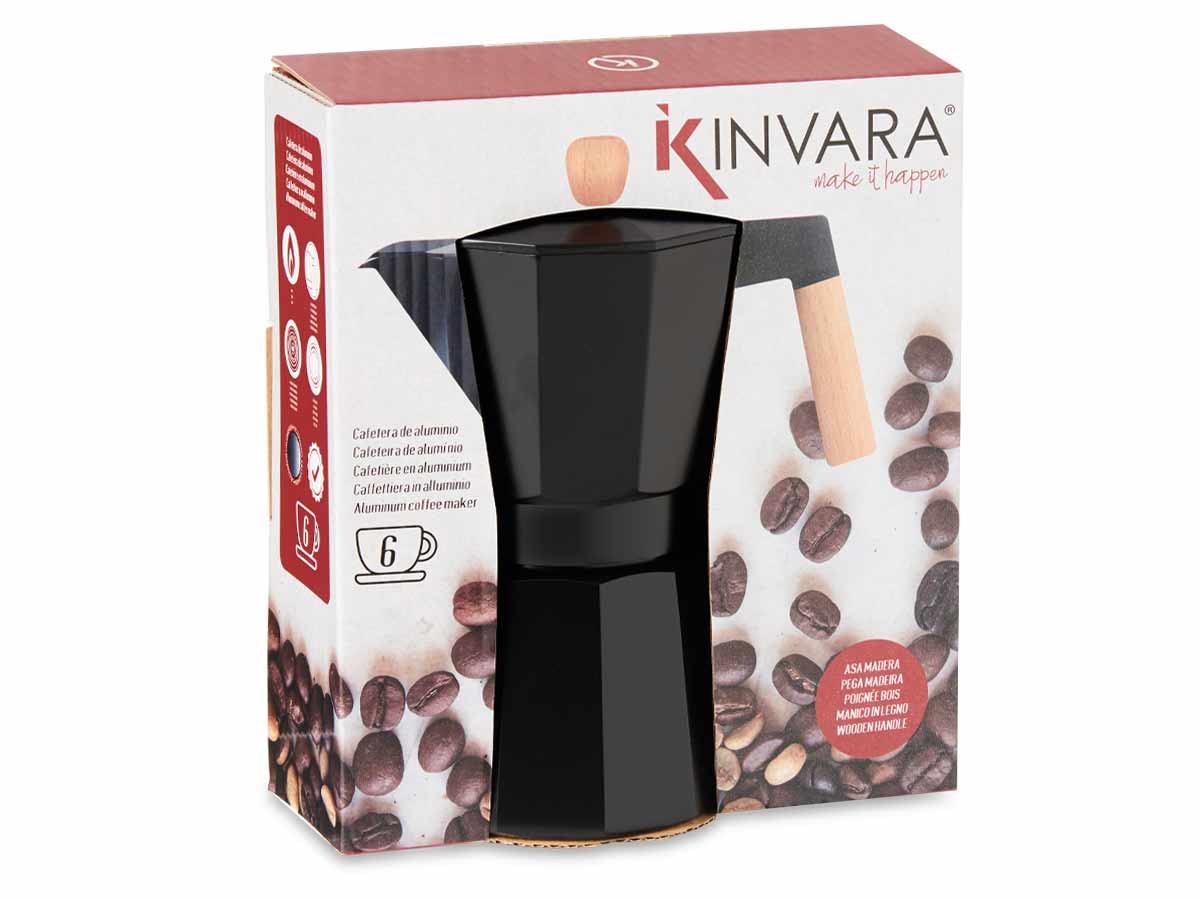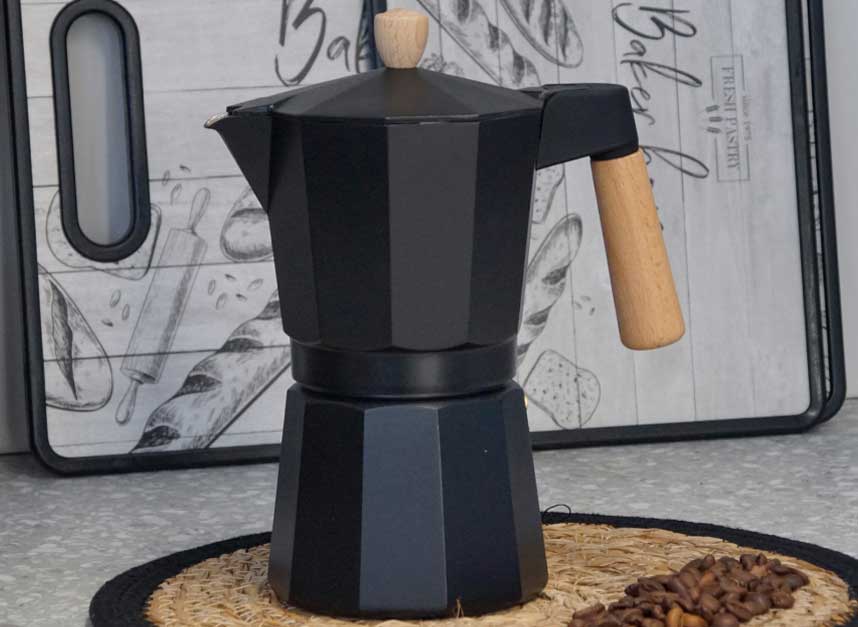 6 cups black aluminium coffee maker wood handle