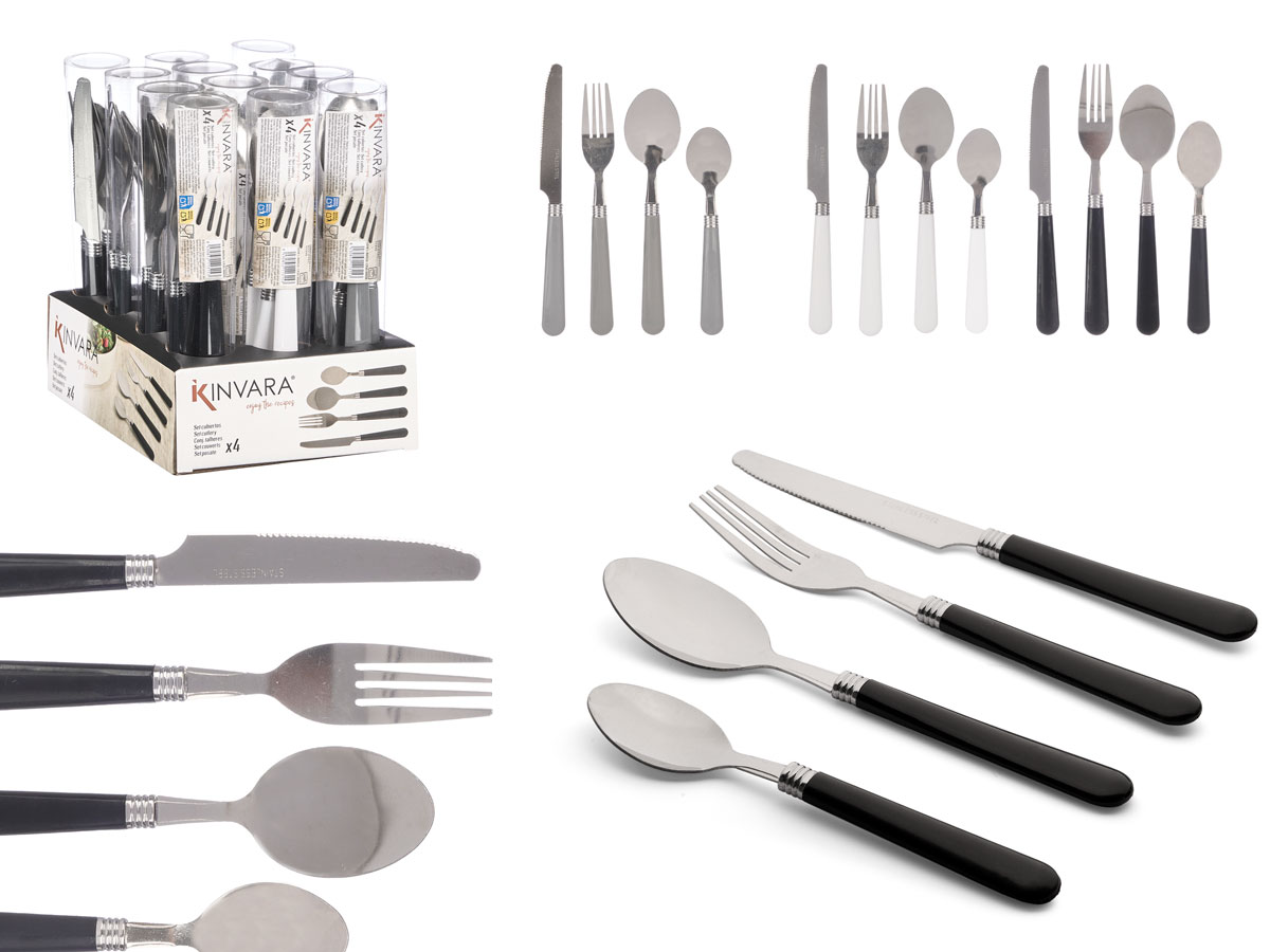 Set 4 cutlery assorted 3 neutral colours