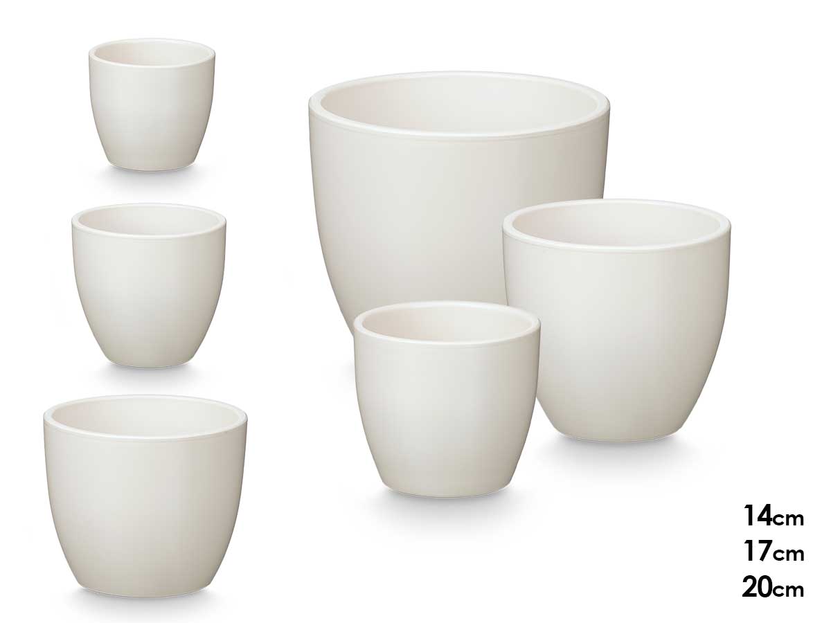 Set 3 rounded pots 14 17 22cm matt white