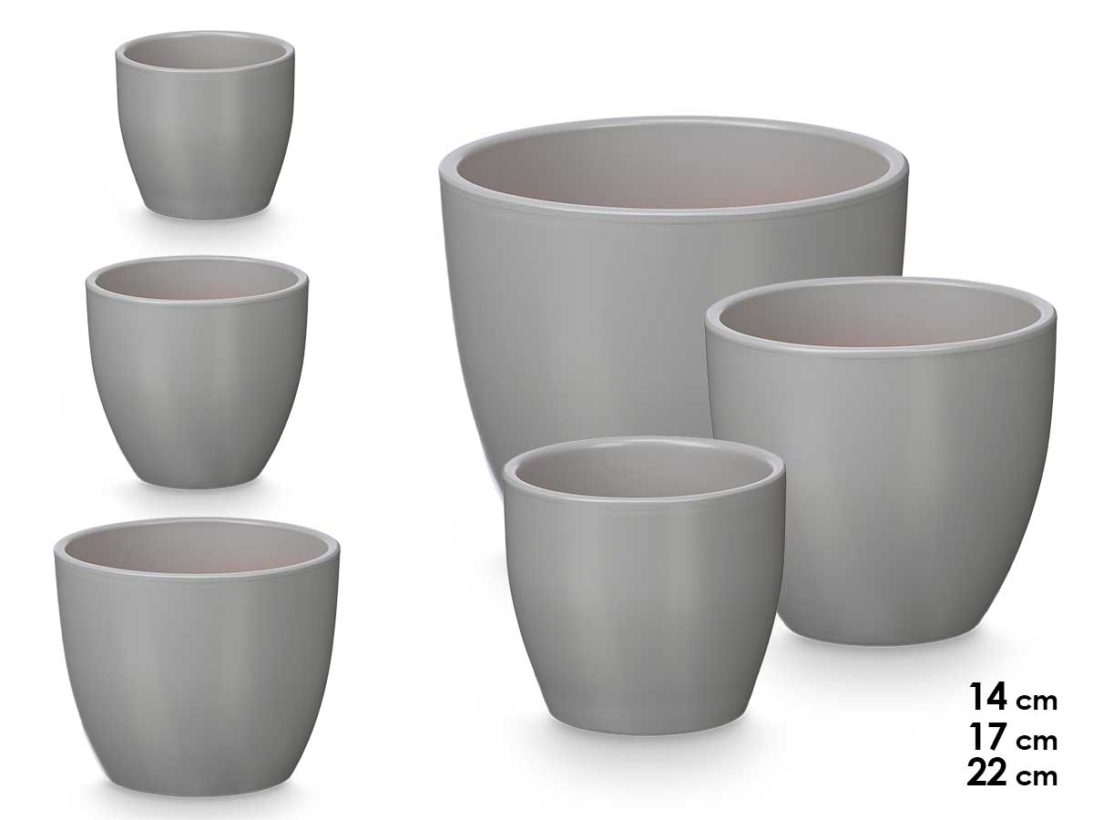 Set 3 rounded pots 14 17 22cm matt grey