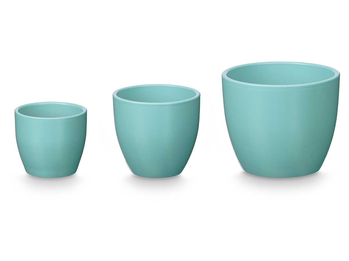 Set 3 rounded pots 14 17 22cm matt turquoise