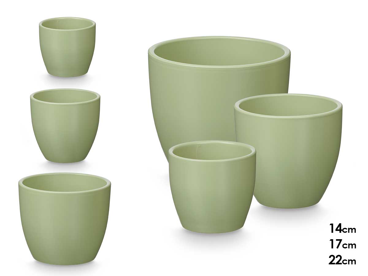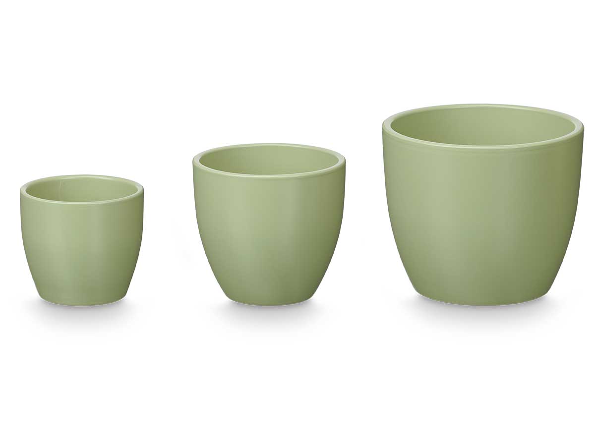 Set 3 rounded pots 14 17 22cm matt mint