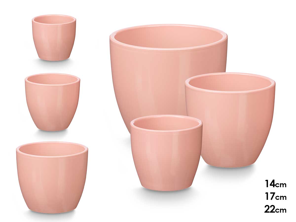 Set 3 rounded pots 14 17 22cm matt pink