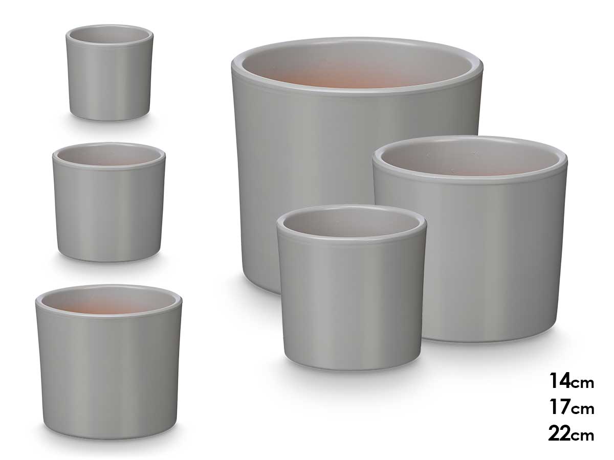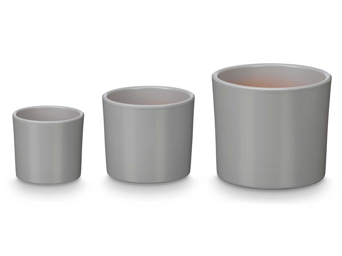 Set 3 cylinder pots 14 17 22cm matt grey