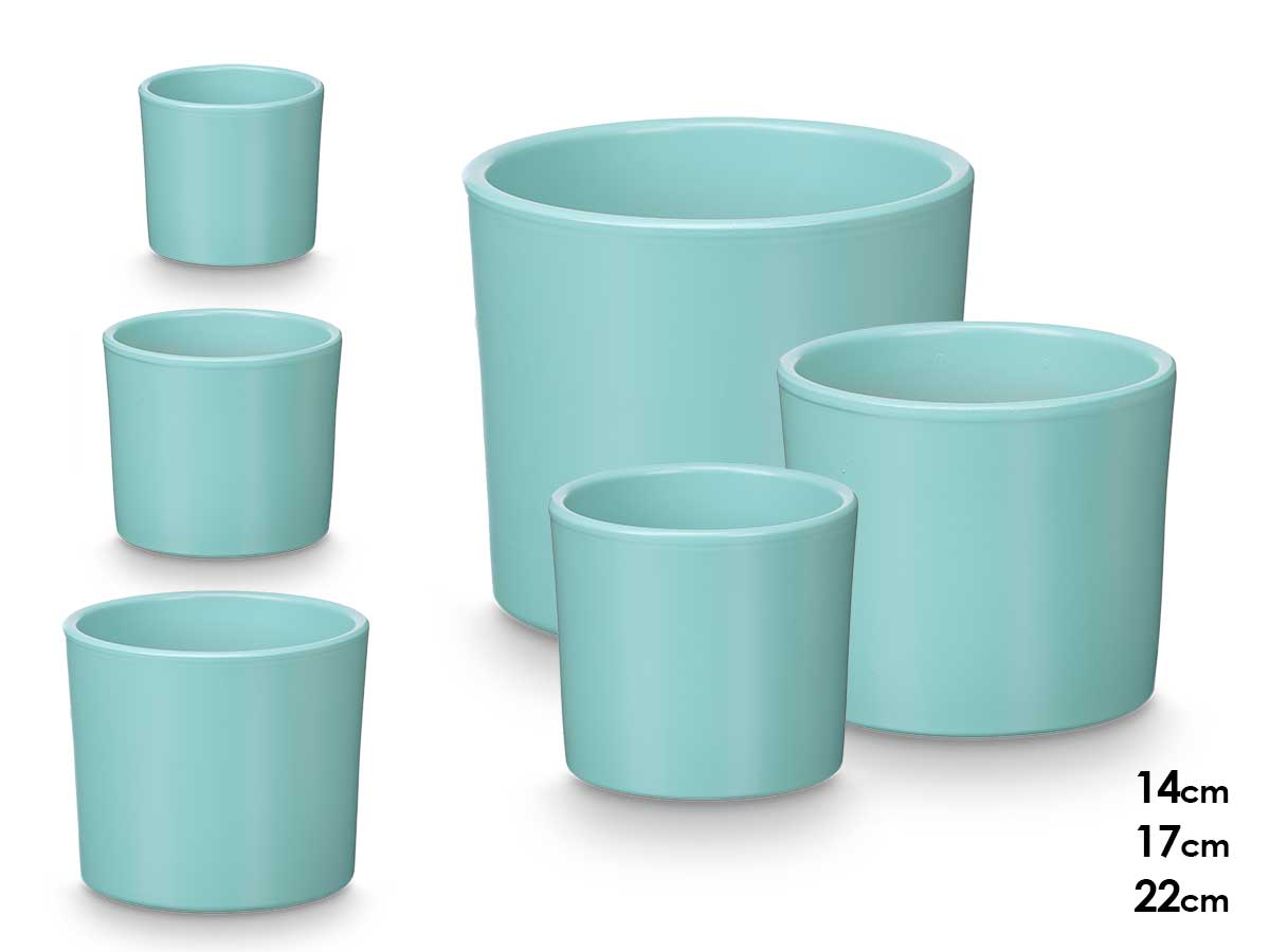 Set 3 cylinder pots 14 17 22cm matt turquioise