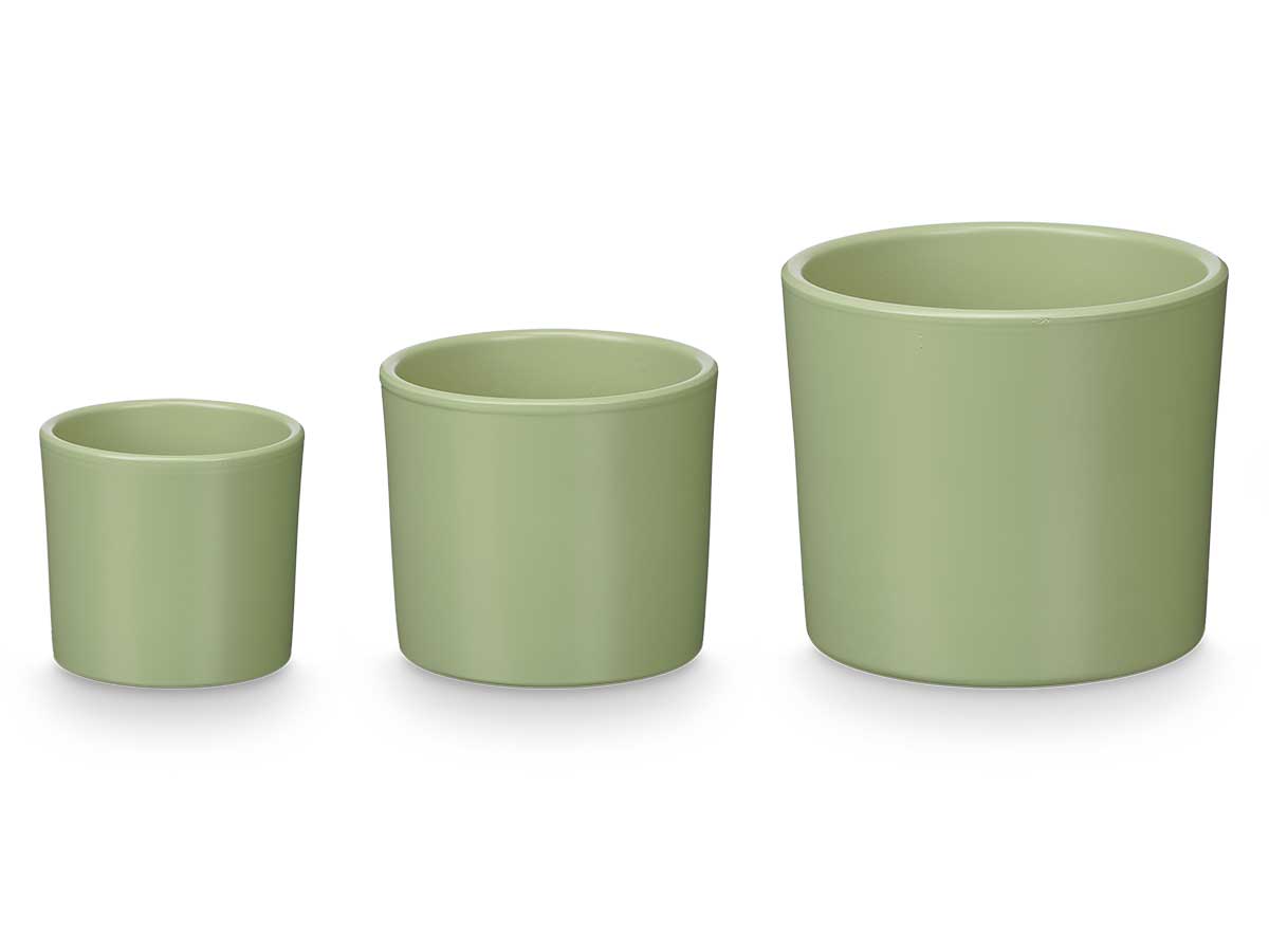 Set 3 cylinder pots 14 17 22cm matt mint
