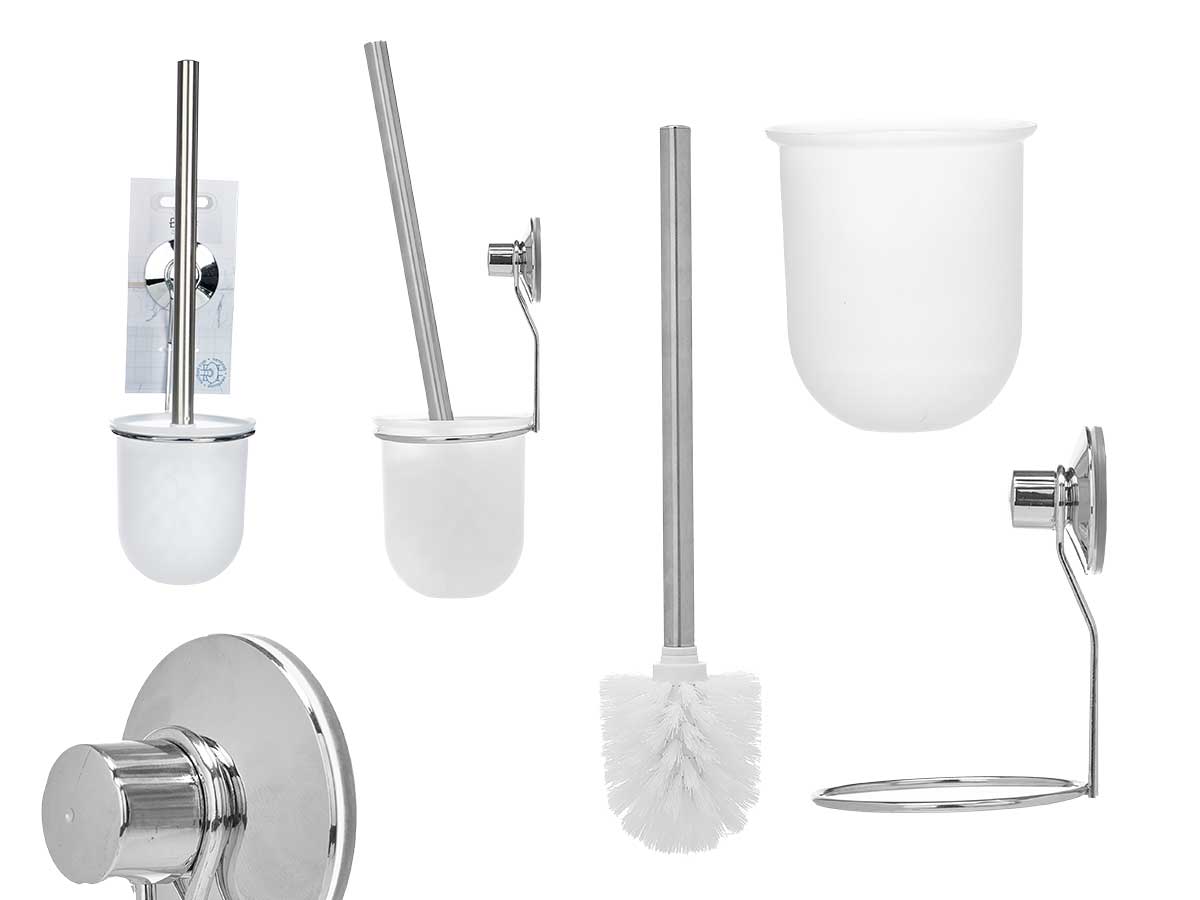Steel toilet brush wall support suction pad