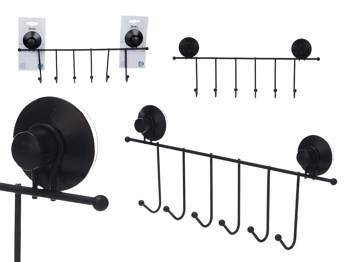 Metal hanger 6 hooks matt black suction pad