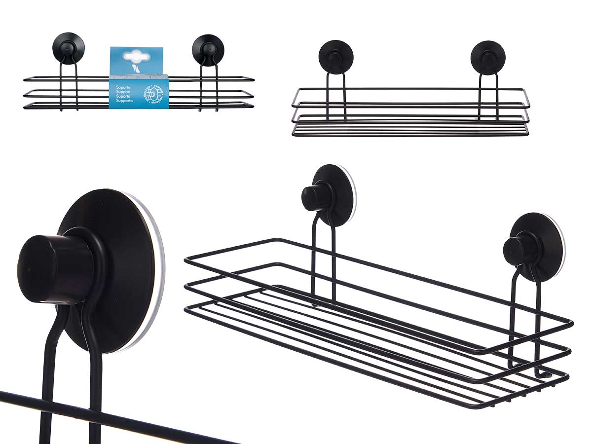 Black rect metal shower support low suction pad