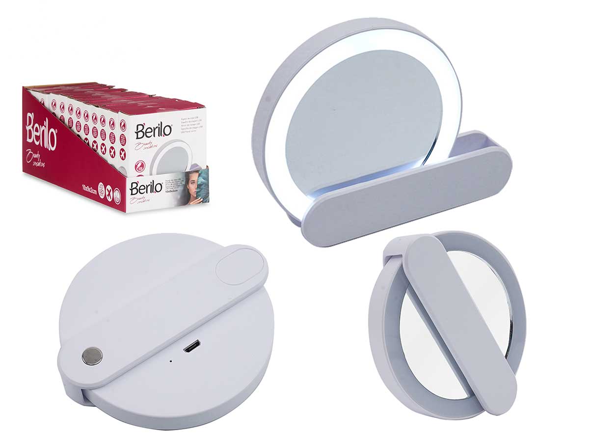 Abs travel mirror with led and usb cable