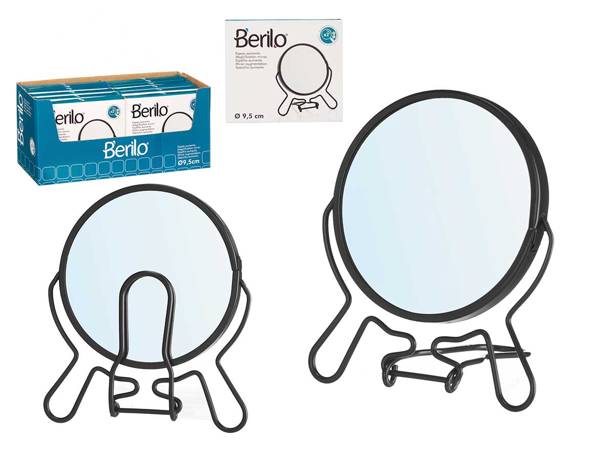 Double-sided magnifying mirror 9,5 cm black