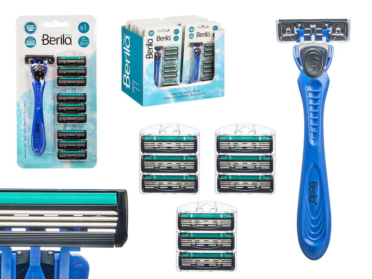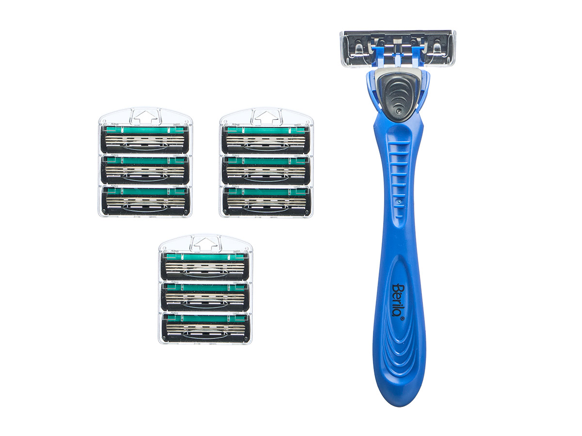 Razor with 4 replacement cartridges 10 blades blue