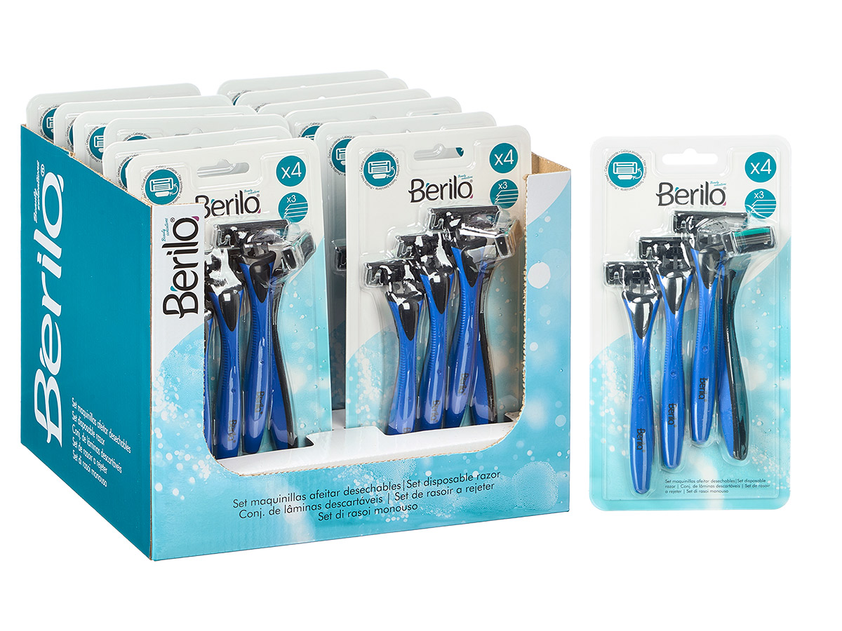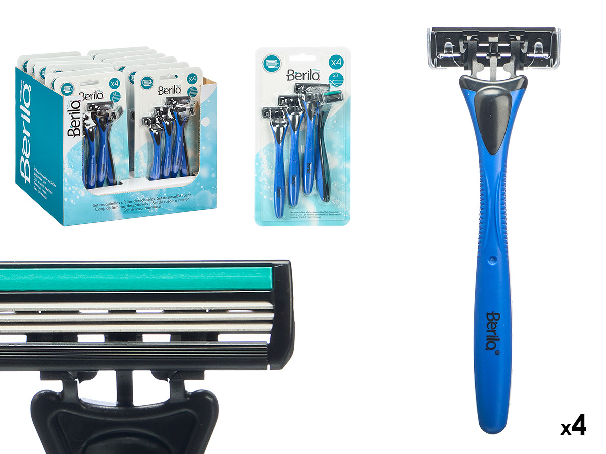 Set of 4 razors with 3 blades blue