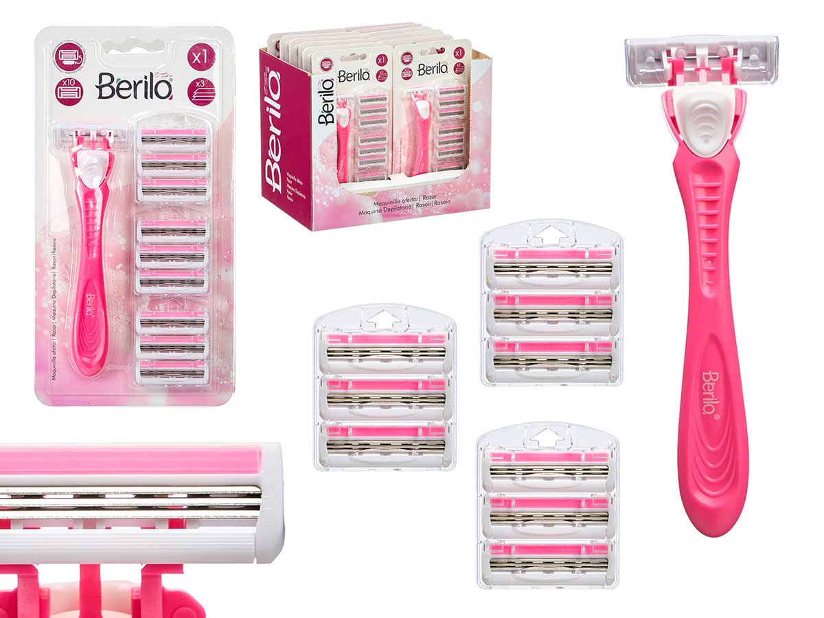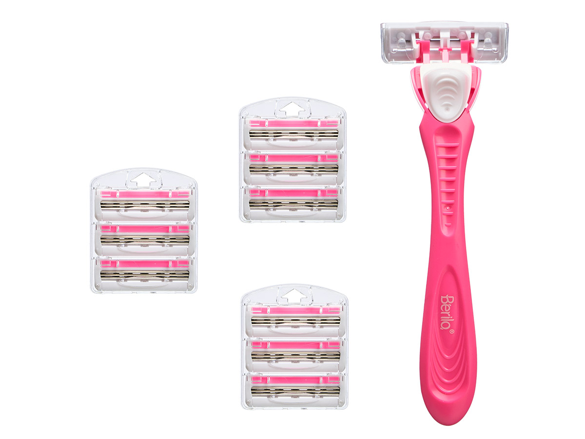 Razor with 4 replacement cartridges 10 blades pink
