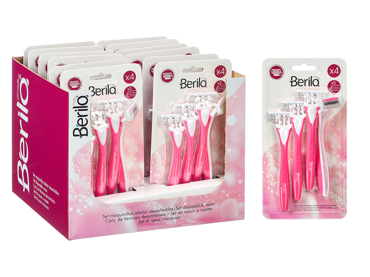 Set of 4 razors with 3 blades pink