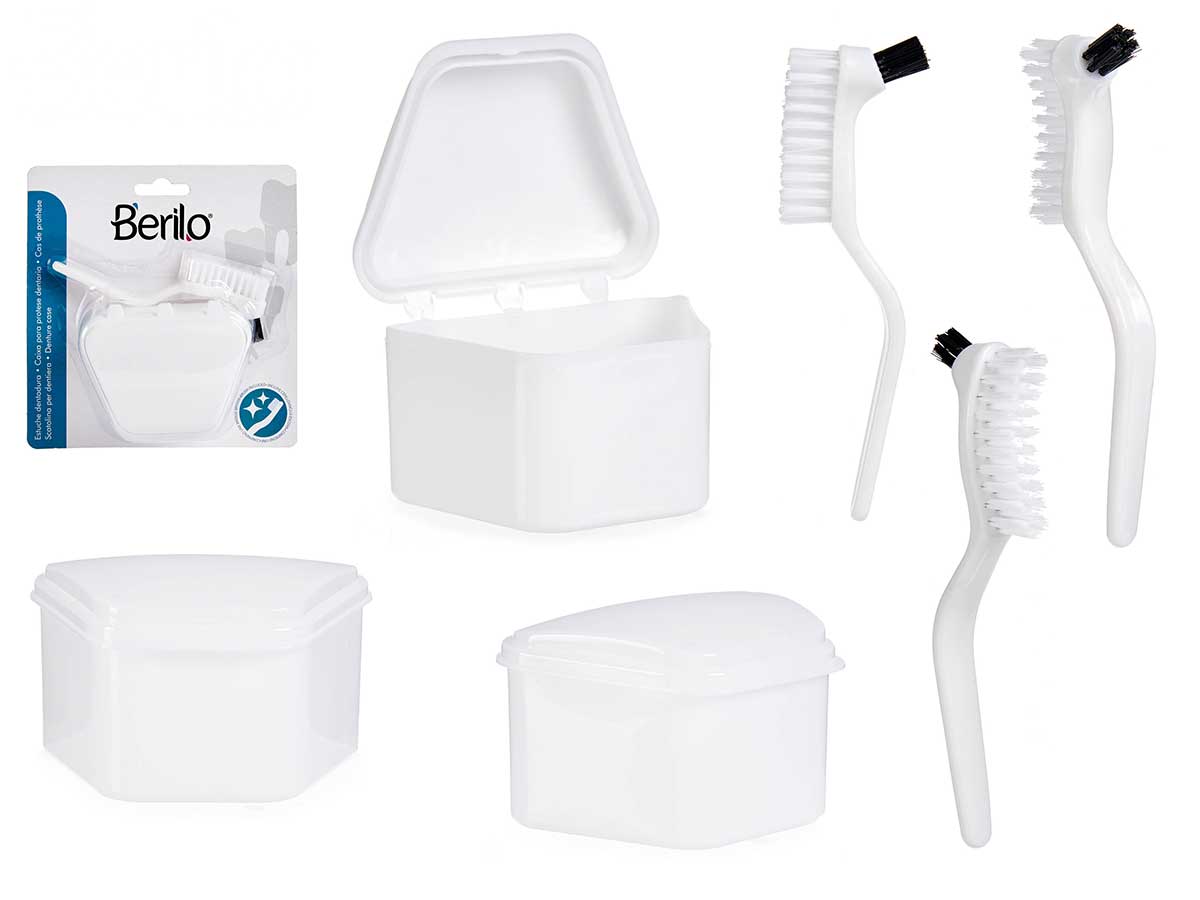 Denture bath with brush white