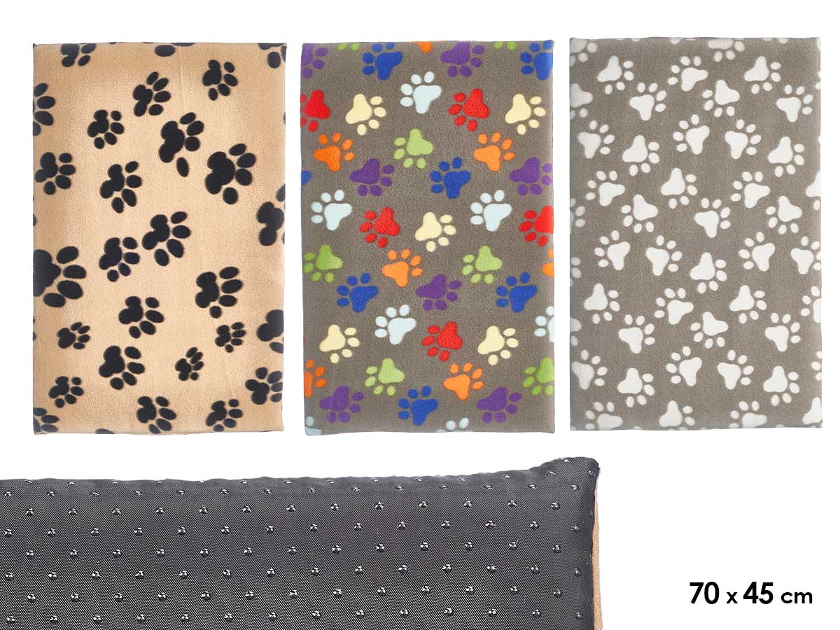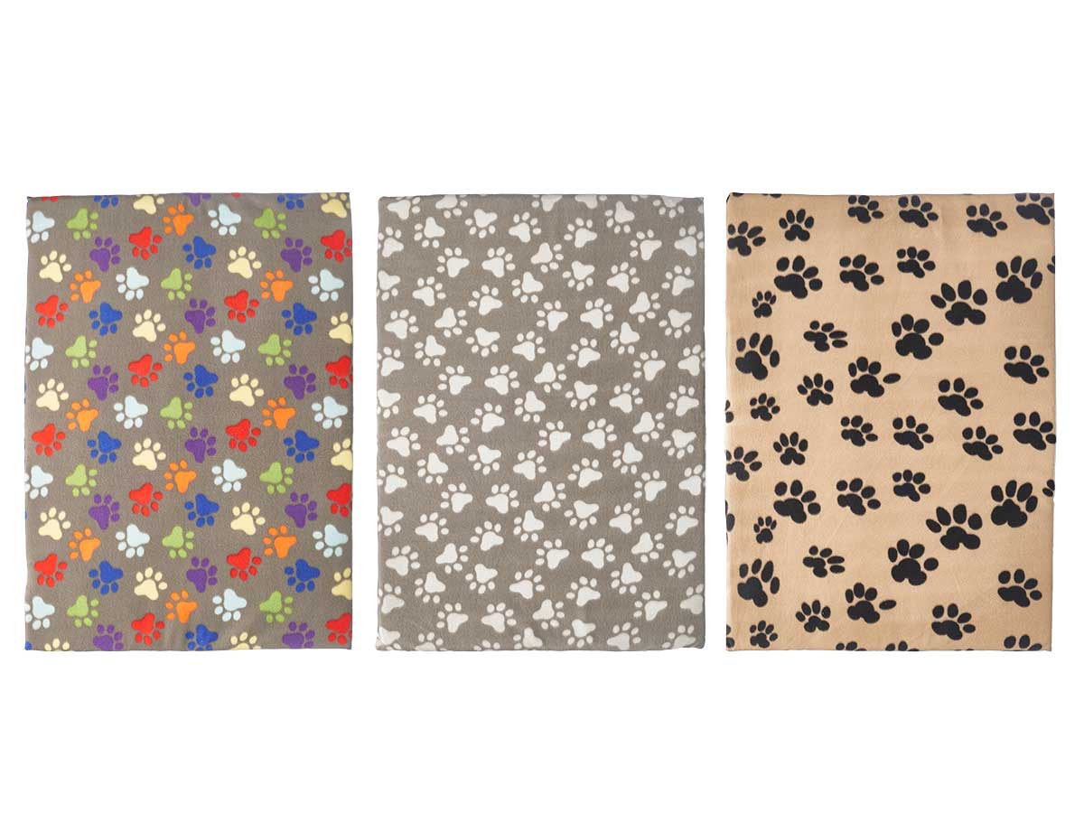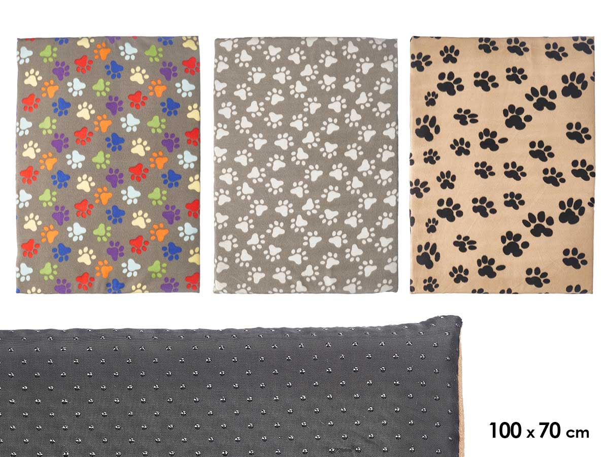 Pet bed paws assorted 3 colours 100x70cm