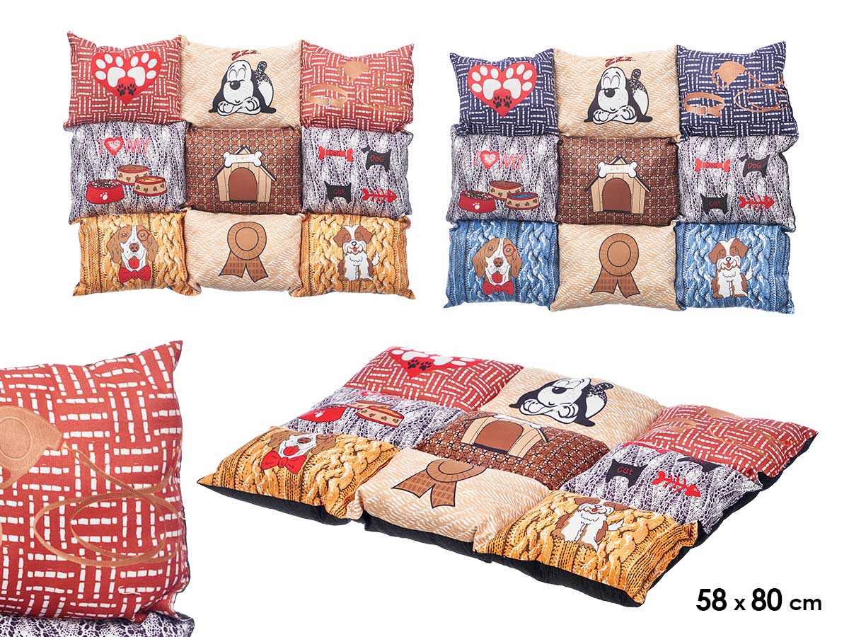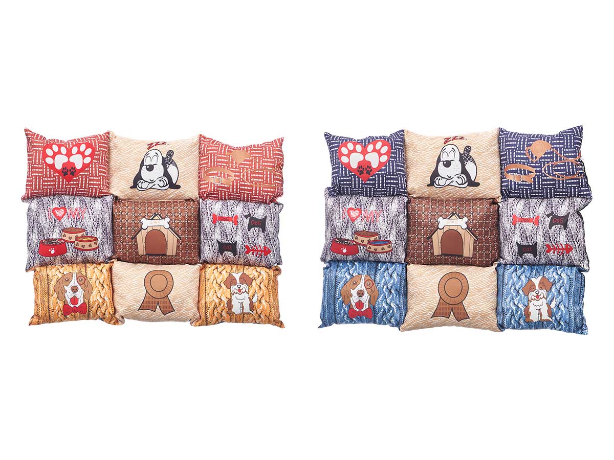 Rectangular pet bed bone paws assort2 col 58x48cm