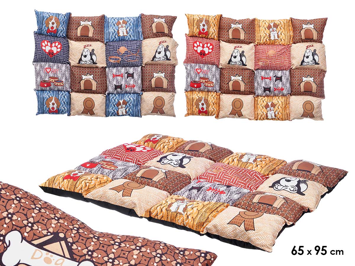 Rectangular pet bed bone paws assort2 col 85x60cm