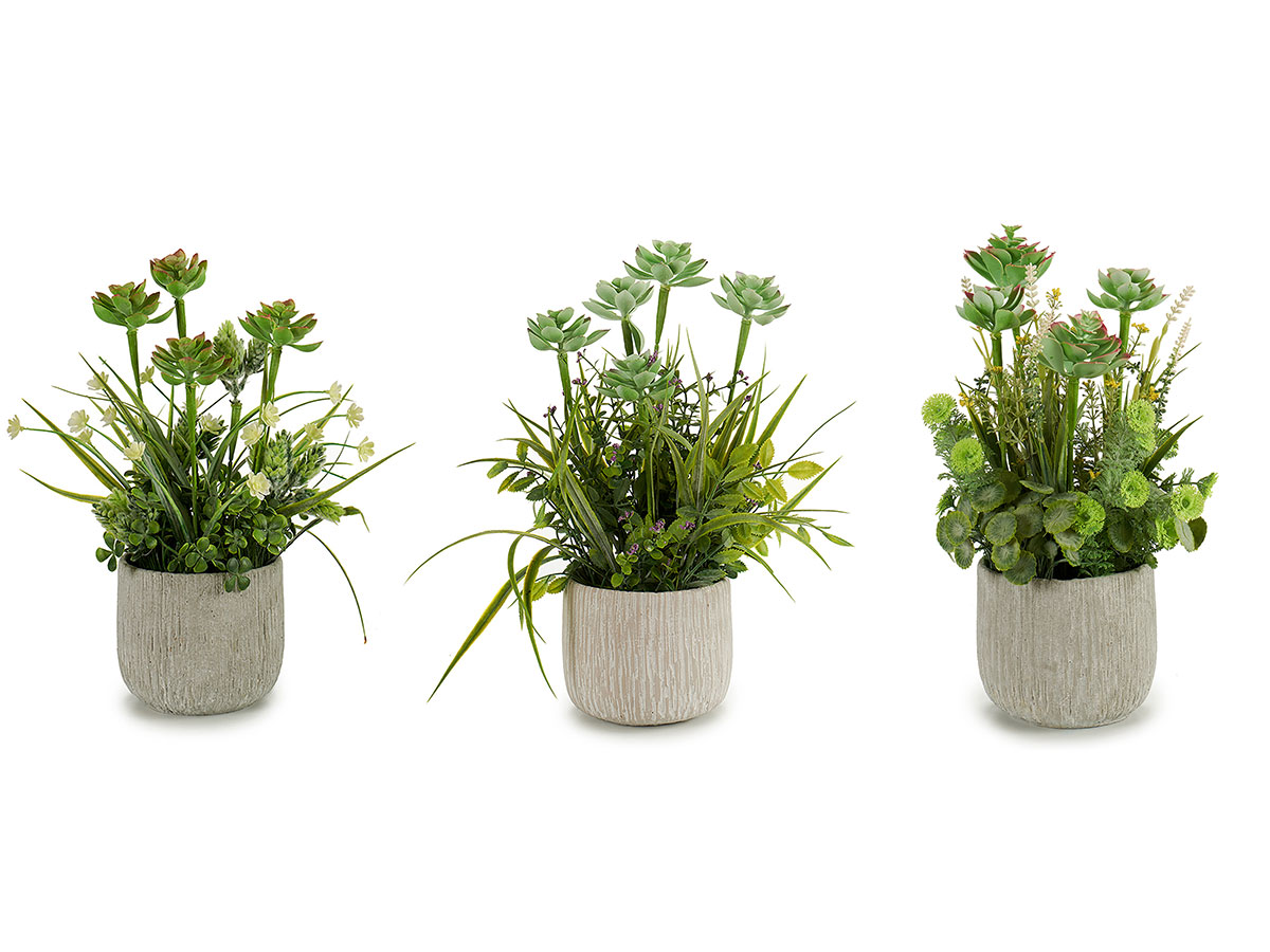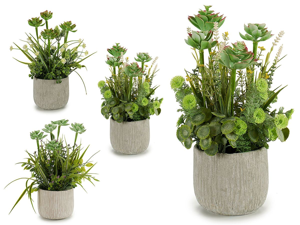 Planta artificial tallos maceta cemento s3