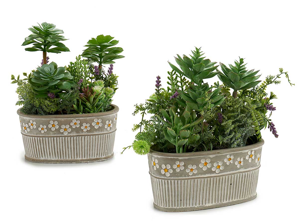 Maceta piedra ovalada plantas surtido 2